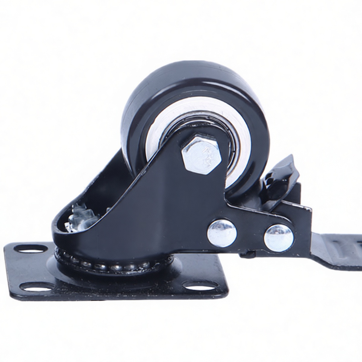 High-load polyurethane wheel rated for 132 lbs per unit Integrated brake system for secure locking and stability Non-marking wheel compound protects sensitive flooring Quiet operation suitable for noise-sensitive indoor facilities Durable plate mount design for rigid attachment to equipment Smooth rolling performance on concrete, tile, and epoxy floors