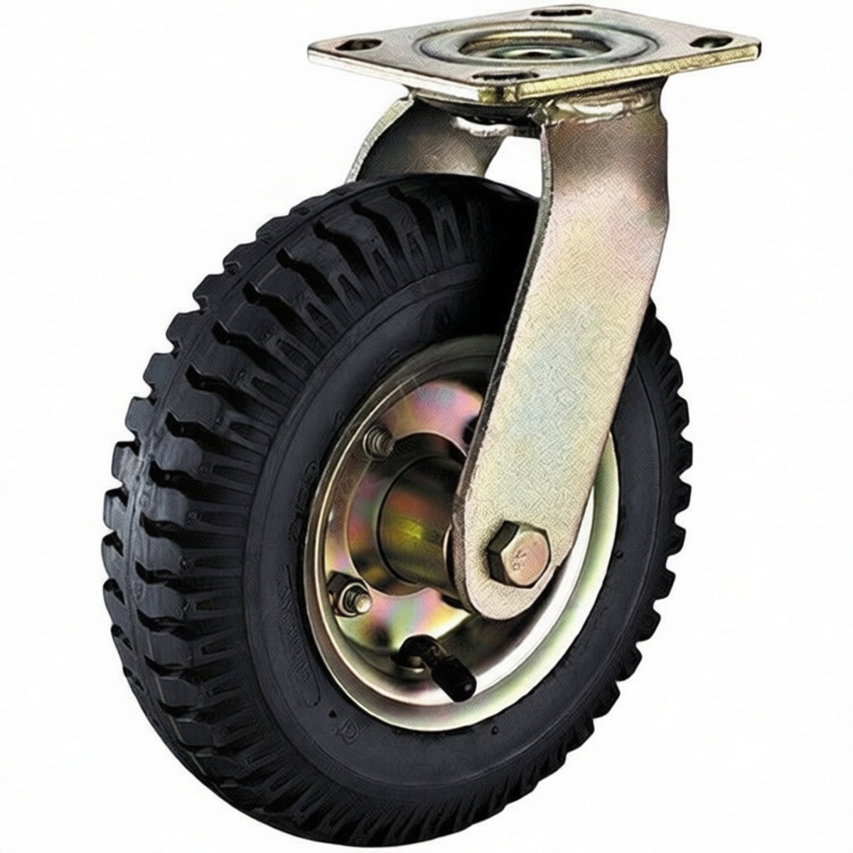 High-load rubber wheel supports up to 440 lbs per unit 9.8-inch wheel diameter offers superior rollability over debris and cracks Durable rubber tread protects delicate factory floors from scuffs and marks Plate mount stem configuration ensures maximum installation stability 360-degree swivel capability allows for precise positioning in tight spaces Shock-absorbing compound reduces wear on transported goods Quiet operation ideal for indoor warehouses and assembly lines