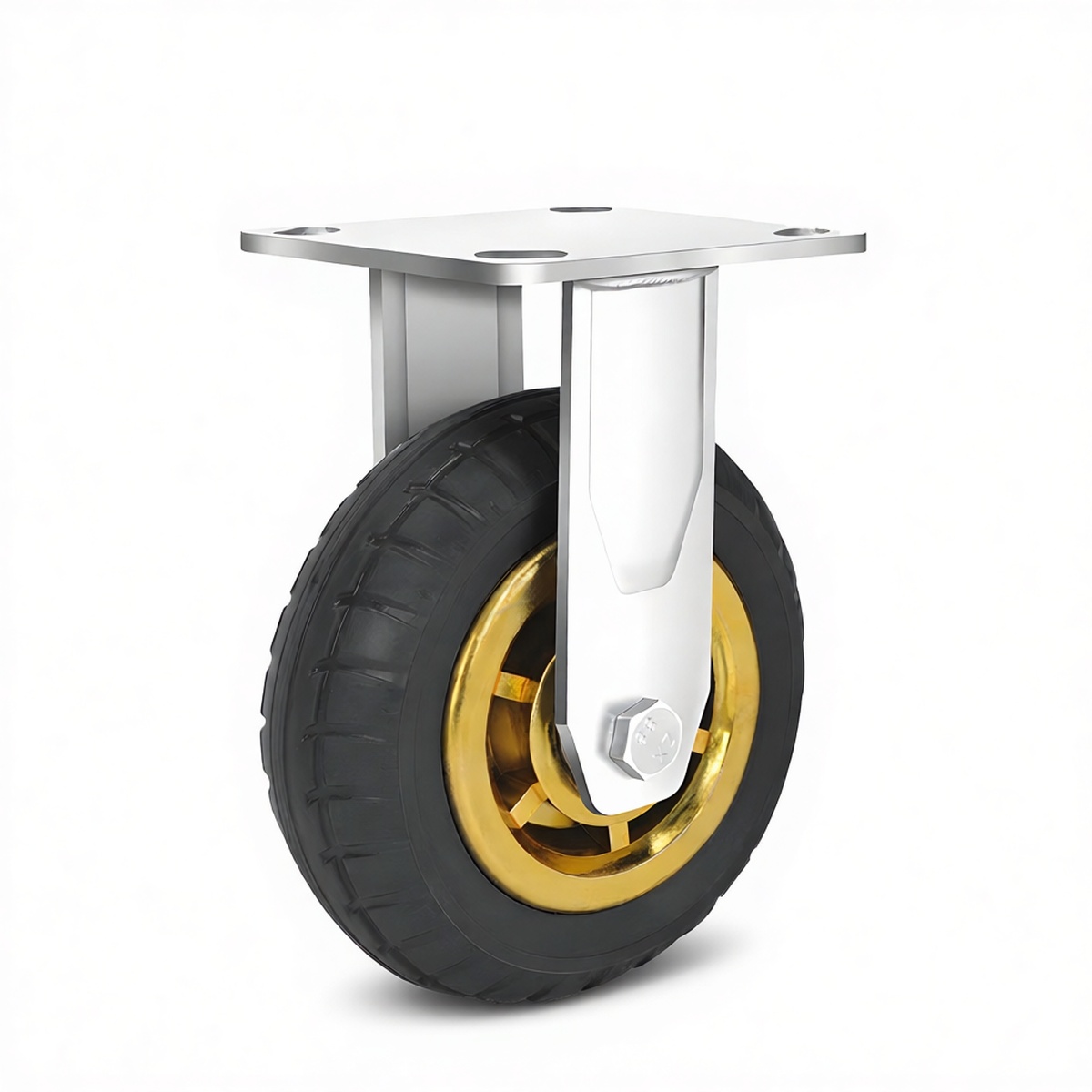 Heavy-duty industrial carts and trolleys Manufacturing assembly line equipment Warehouse storage racks and shelving units Hospital gurneys and medical transport devices Food service kitchen carts and utility wagons Audio-visual equipment stands and stage platforms Library book carts and archival storage systems School and institutional maintenance dollies These casters are specifically engineered to balance durability with floor protection. The rubber tread compound is formulated to withstand continuous use without leaving marks on sensitive surfaces, making them suitable for facilities with polished concrete, epoxy coatings, or vinyl tile flooring. The fixed stem configuration eliminates the complexity of swivel mechanisms, reducing potential points of failure and maintenance requirements. This simplicity translates to longer service life and lower total cost of ownership for fleet operators. The standardized dimensions ensure compatibility with a wide range of existing equipment frames, allowing for easy retrofitting or replacement without modification. Whether deployed in a high-traffic distribution center or a precision manufacturing cell, these casters deliver the steady, predictable motion required for safe and efficient