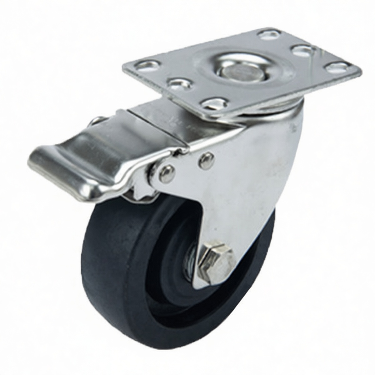Integrated brake system for secure equipment positioning and safety Full stainless steel construction for maximum corrosion resistance Smooth wheel surface designed for easy sanitization and washdown compliance High load-bearing capacity supporting up to 286.65 lbs per unit Compact 5-inch overall height for low-profile equipment