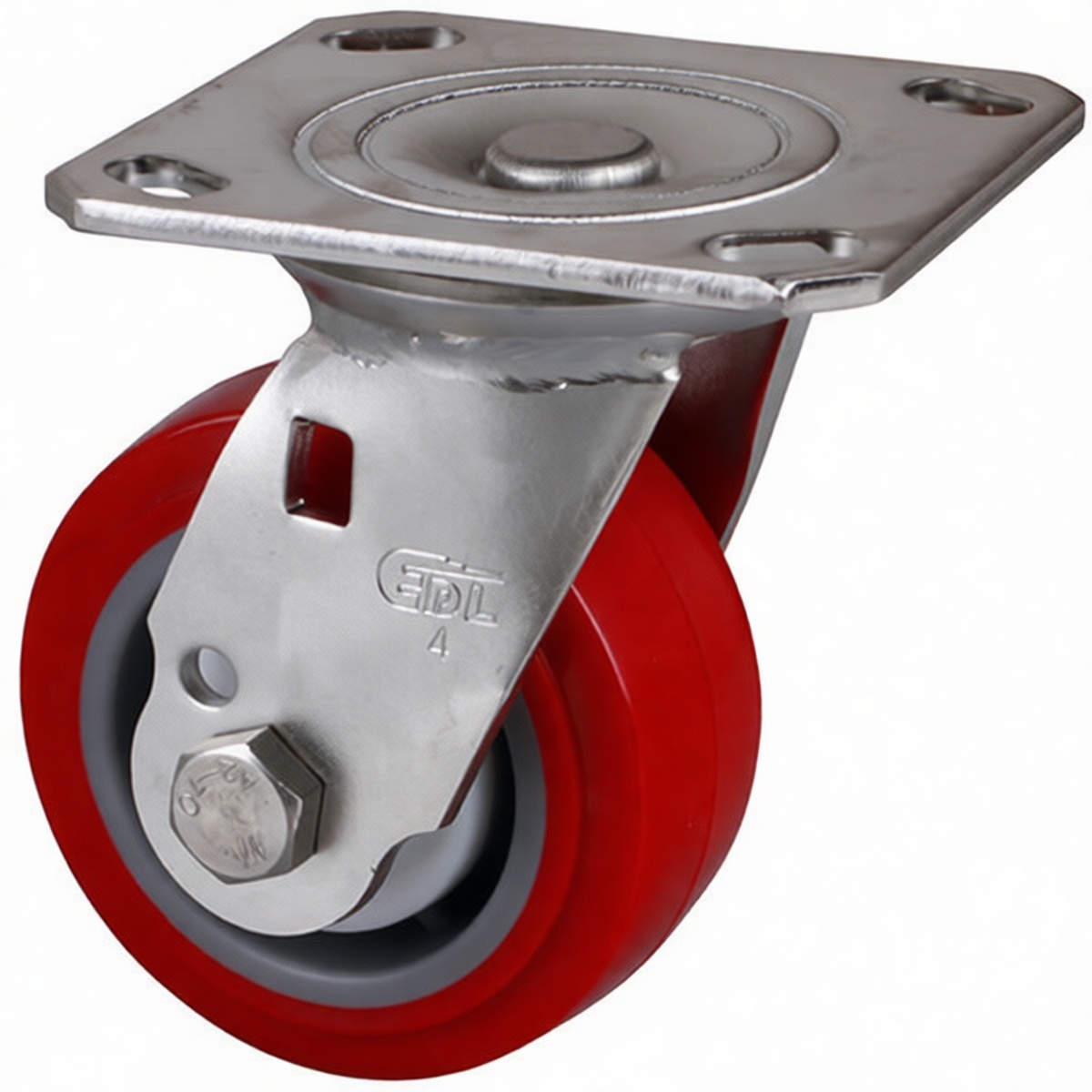 Engineered for rigorous industrial applications, this heavy-duty plate mount caster delivers exceptional load-bearing performance and durability. The unit features a robust 4-inch high-strength polyurethane wheel designed to support substantial weights while protecting delicate flooring surfaces. Constructed entirely from premium stainless steel, the assembly offers superior resistance to corrosion, making it an ideal choice for food processing plants, chemical facilities, pharmaceutical environments, and outdoor operations where hygiene and weather resistance are critical. The precision-engineered swivel mechanism ensures smooth 360-degree maneuverability, allowing for effortless navigation of heavy equipment even under maximum load conditions.