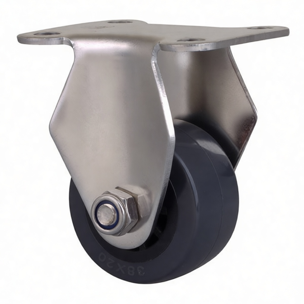 Corrosion-resistant stainless steel construction for harsh washdown environments 2.36-inch polyurethane wheels protect delicate flooring surfaces Fixed stem design ensures precise straight-line tracking High chemical resistance suitable for food grade