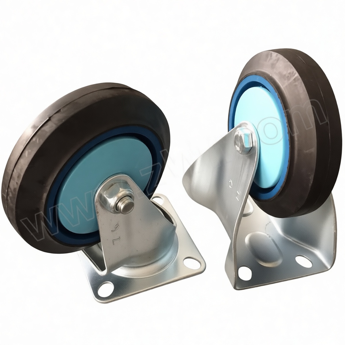 High load capacity rated at 660 lbs per caster for heavy industrial transport 4.9-inch rubber wheel design ensures silent movement and floor protection Durable steel frame construction resists deformation under stress 360-degree swivel mechanism provides superior maneuverability in tight spaces Plate mount interface allows for secure bolting to various equipment bases Ideal for use on concrete, tile, and composite industrial flooring Packaged in sets of six for complete cart or dolly installation